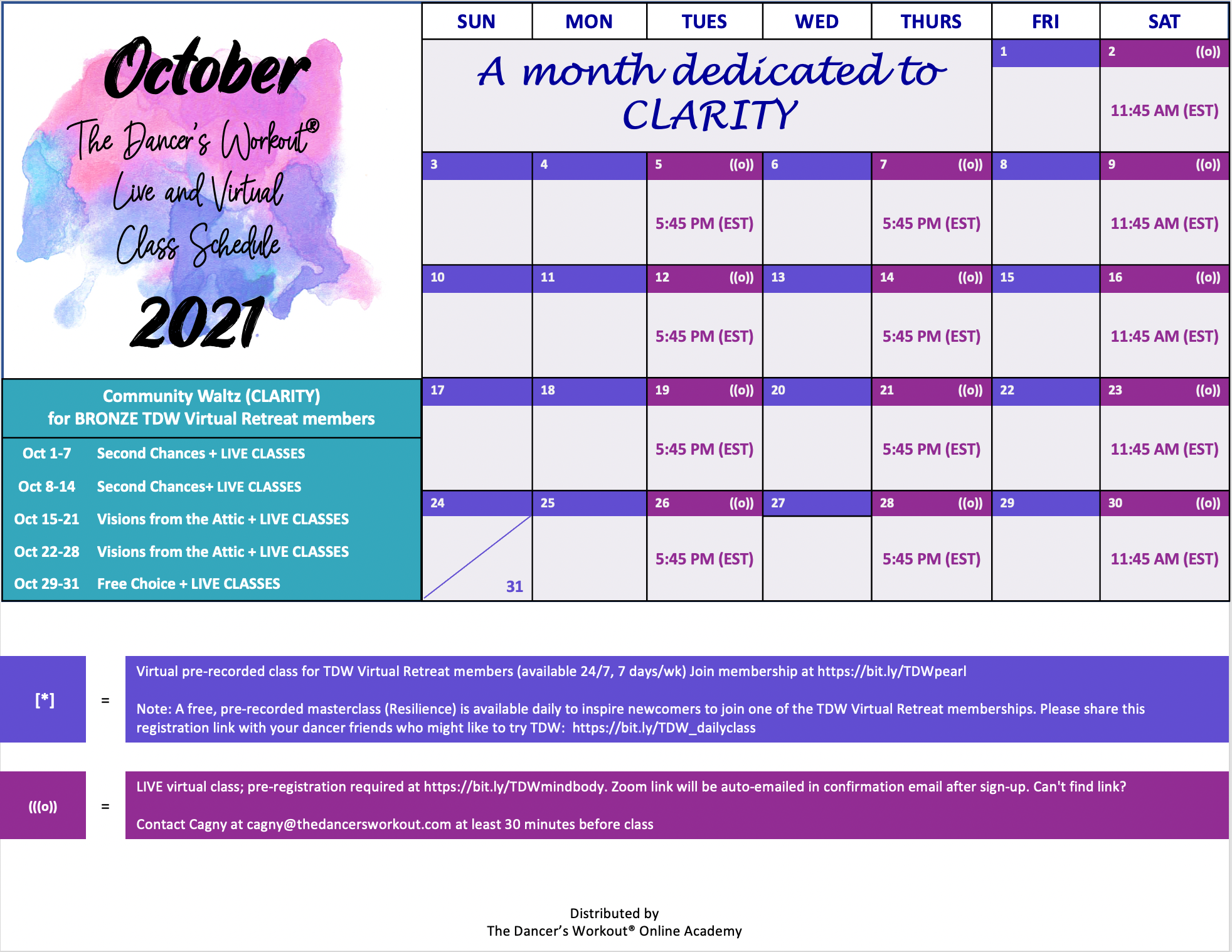 You'll soon see that each month has been given a theme. This month's theme is CLARITY. Each class this month has an element of CLARITY!